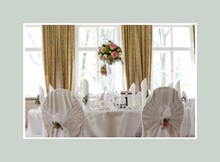 Was muss auf einer romantischen Hochzeit noch vorhanden sein? Natürlich die Rosen! Es können weiße Rosen verwendet werden, aber für zarte Kontraste kann man auch rosa Blumen wählen. Mit diesen kann man vieles dekorieren, etwa schick gefaltete Servietten oder die luftigen Schleifenbänder auf Stuhlhussen. Vor allem aber sollten aus Rosen prachtvolle Blumengestecke gemacht werden. Solche Blumendeko wirkt unglaublich elegant in langen Glasvasen in der Mitte der Tische.